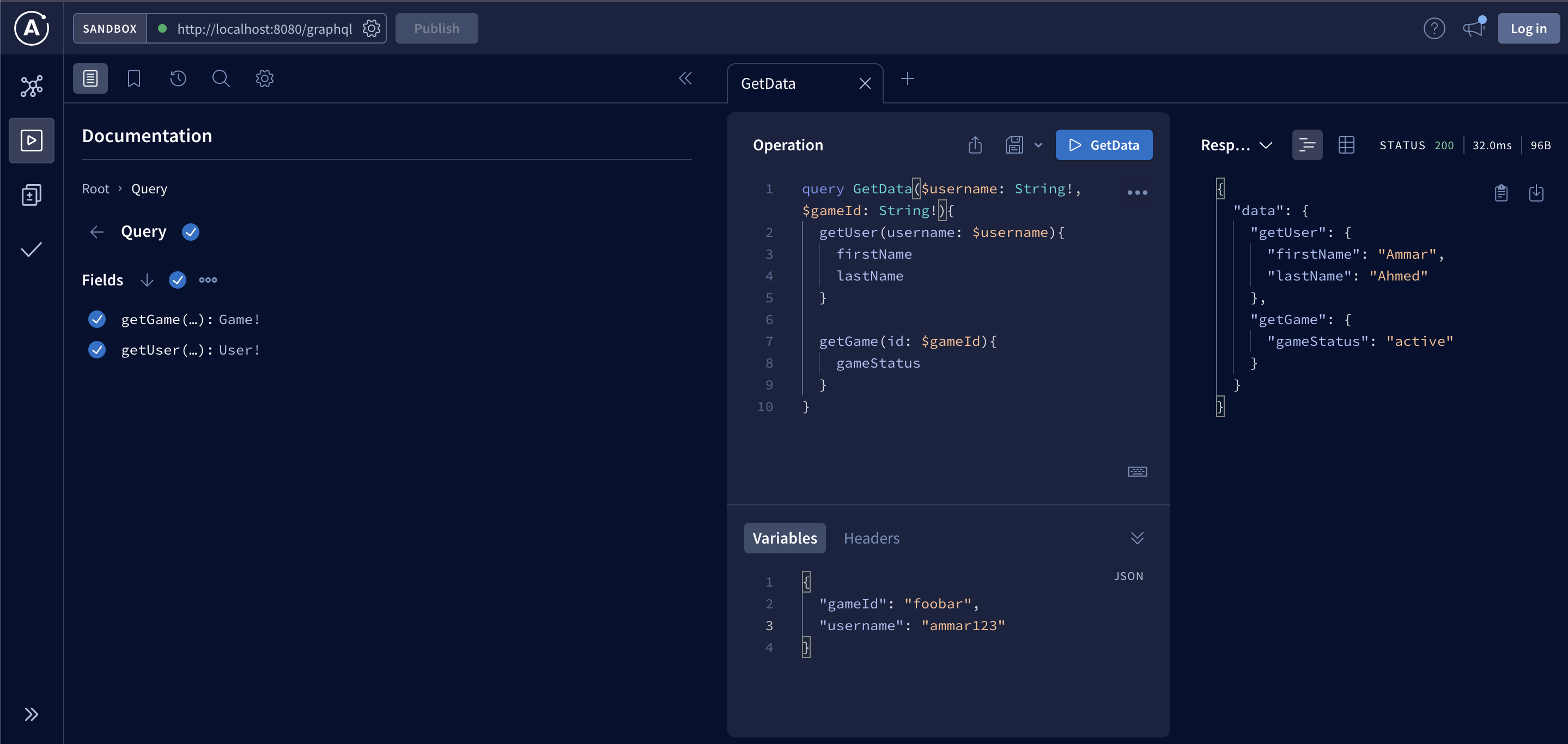 Let’s say that we are looking to query user data as well as game data for a chess game on the same page. However, we only need the user’s first name and last name and only the current status of the game.